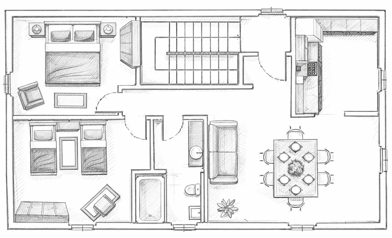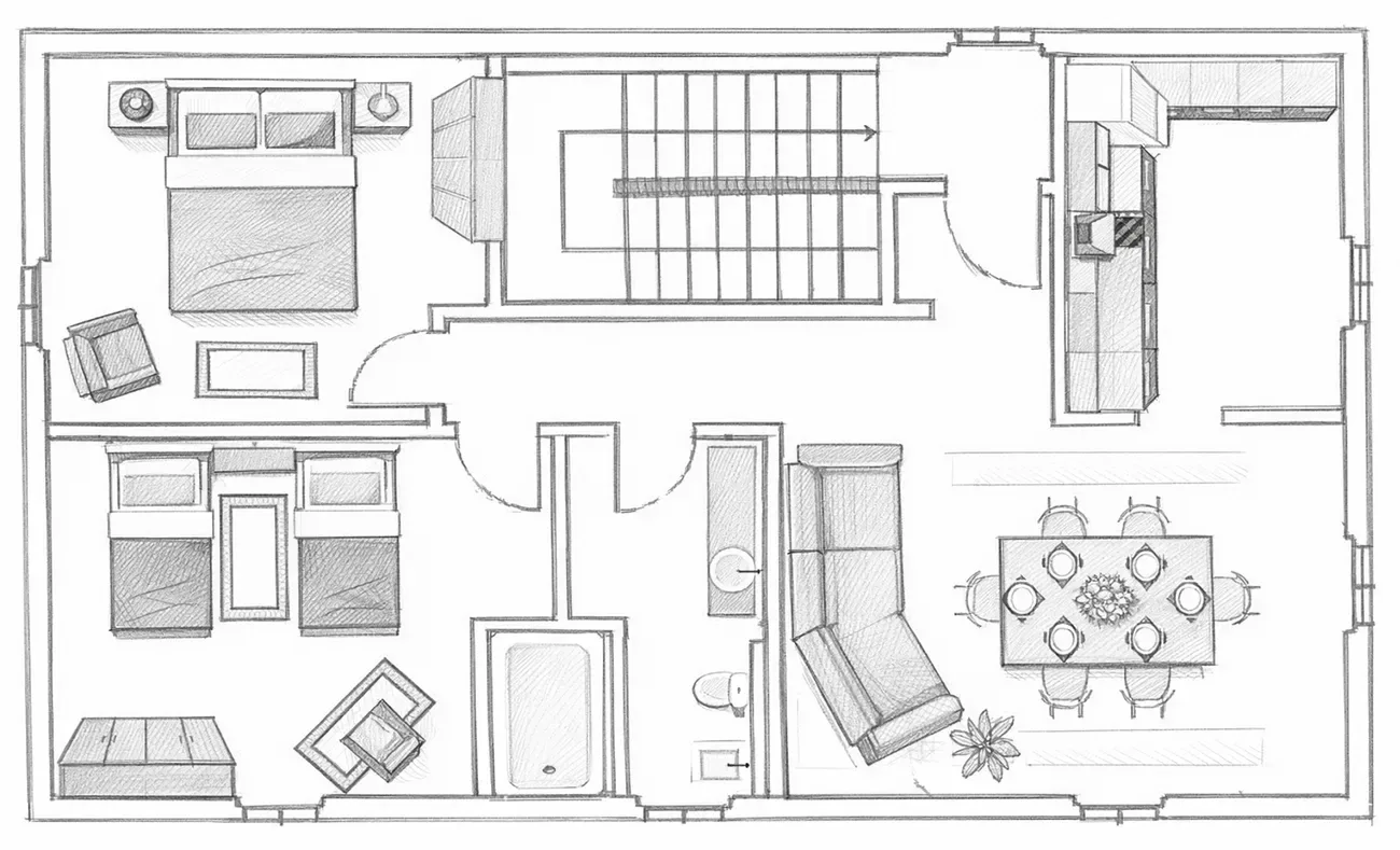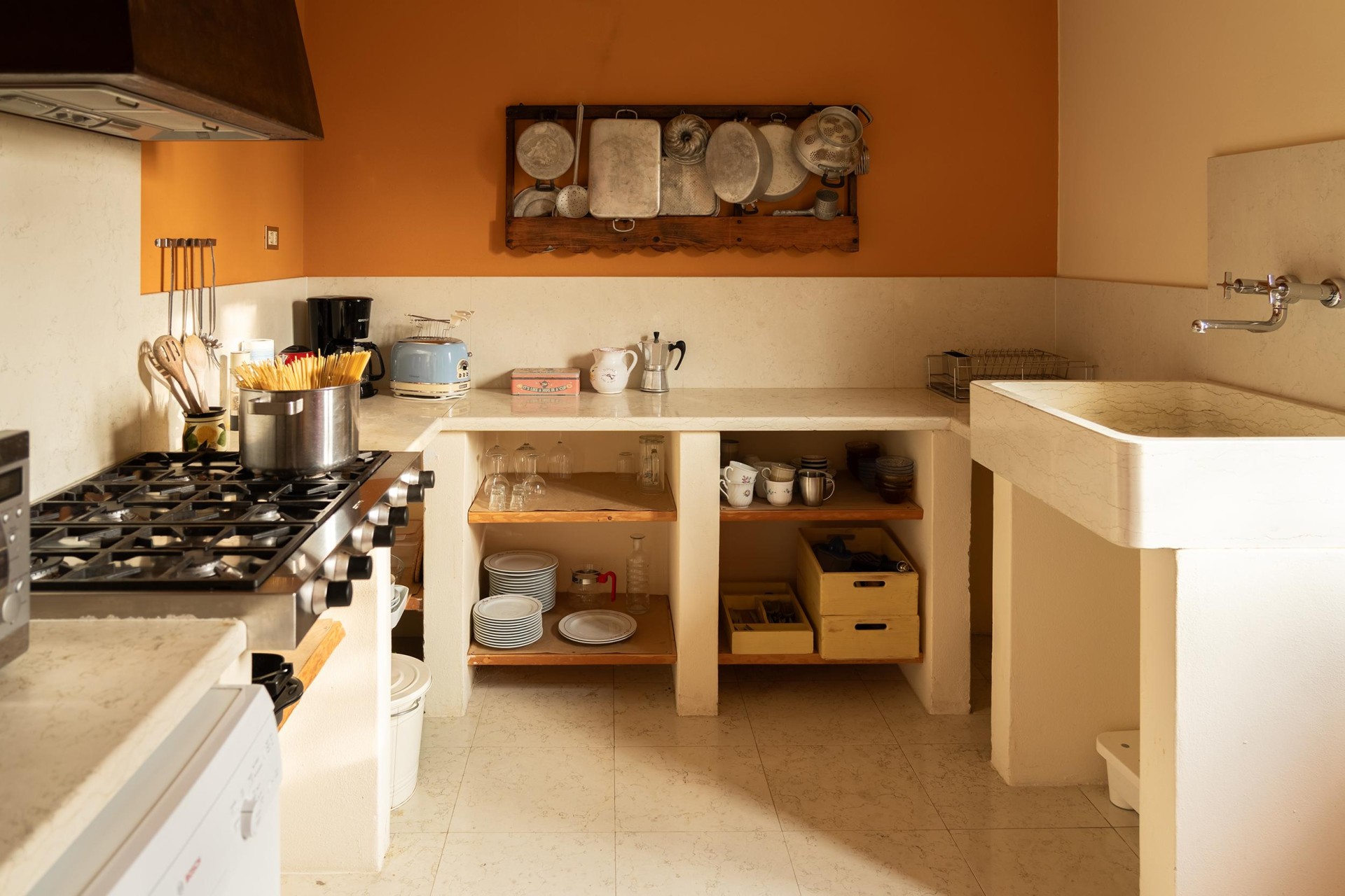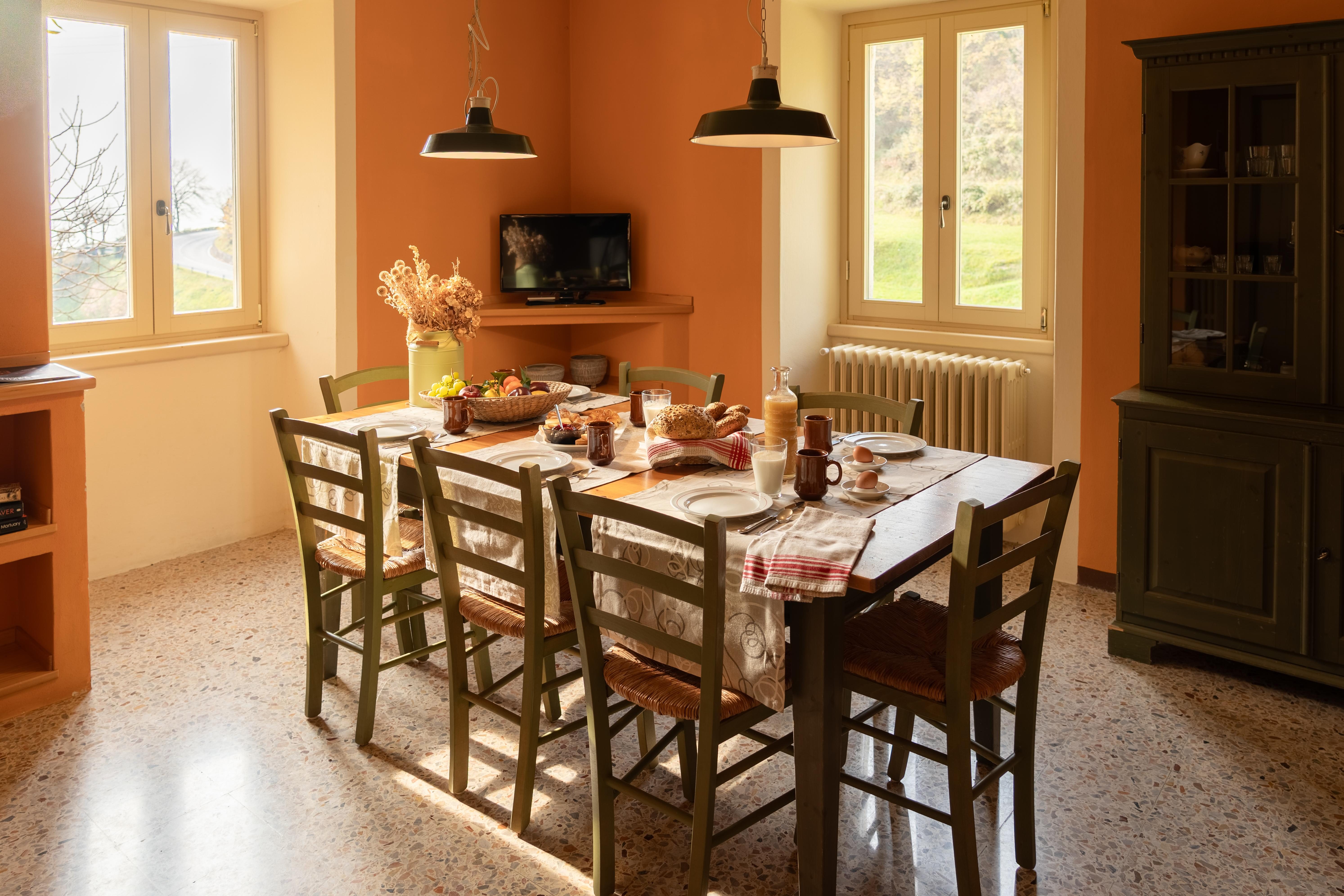 A functional and welcoming space, designed as a common area to gather, dine together, or spend time in good company.