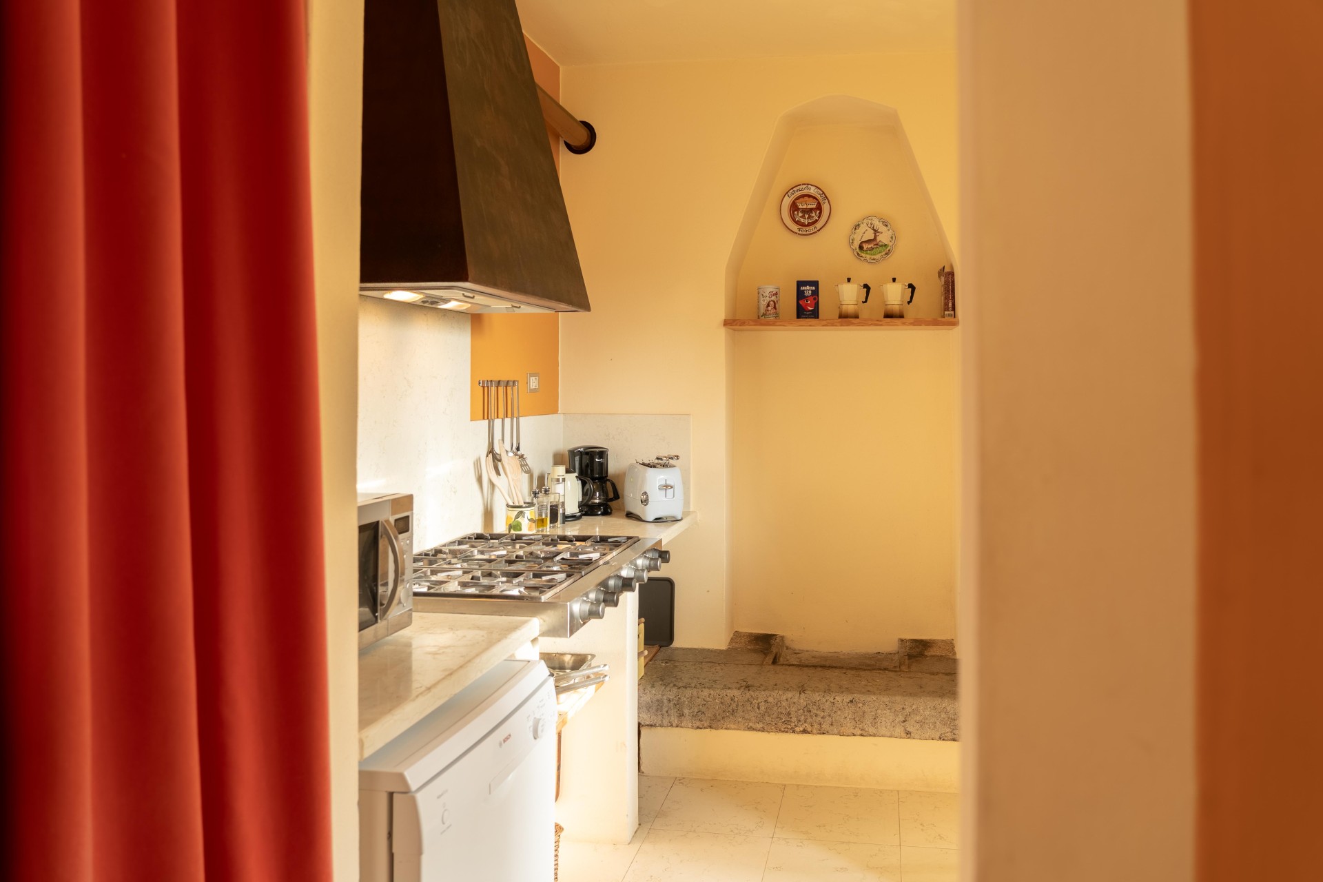 The two-story farmhouse once designed for local farmers combines rustic charm with practical functionality. Ideal for family gatherings or groups, the two-story levels interconnected by an internal staircase offer maximum comfort and privacy.